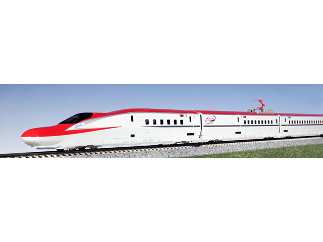 ? 最新鋭の新幹線車両E6系。その斬新なスタイルと、あかね色をメインにしたカラーリングを表現豊かに製品化。