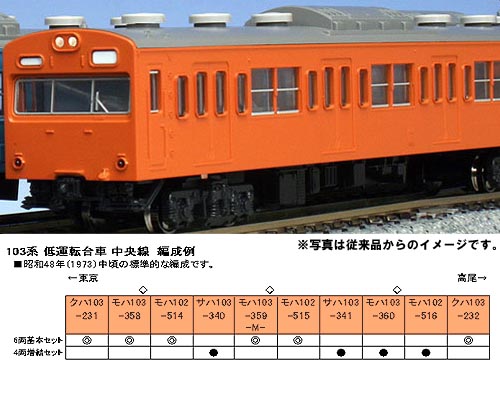 広く活躍した103系ですが、そのなかでも首都圏の大動脈、中央線(オレンジ色)・総武緩