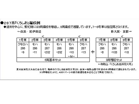?クモハ287とモハ287は屋根を新規製作。中間車2形式(モハ286-200、モハ287-200)を新規製作し「くろしお」を再現。