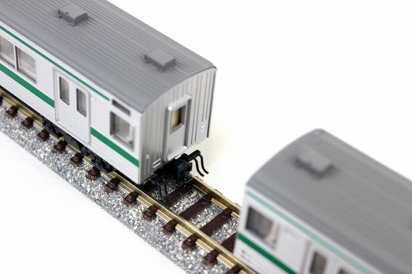● 中間連結器は、台車マウント式KATOカプラー密連形ジャンパ栓付を標準装備。先頭部はダミーカプラー。