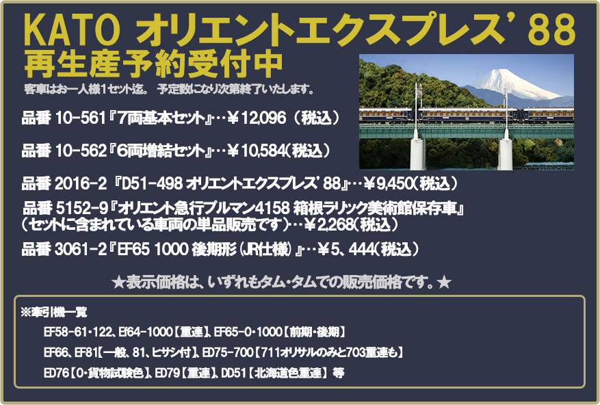 ◆同時期に再生産を予定しているオリエント急行各製品と合わせてお楽しみいただけます。