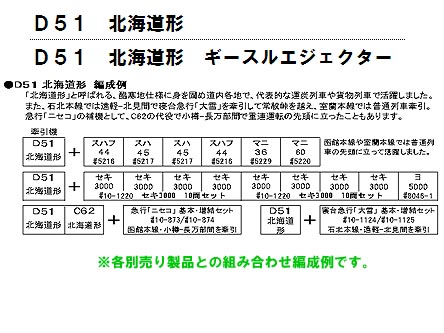 さらに燃焼効率改善のために装備された、「ギースルエジェクター」と呼ばれる装置を積載したD51は、扁平な逆台形の煙突が特徴的で、石炭消費量が約10%低減できる効果をもたらしましたが、すでに蒸機終焉期を迎えていたために36両の改造にとどまり、北海道の追分機関区に集中的に配備され活躍しました。