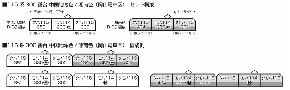 メーカーホームページ⇒https://www.katomodels.com/product/n/115kei_300_okayama