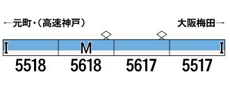 阪神5500系は、1995年(平成7年)に登場した普通用19m3扉の通勤型車両です。阪神初のVVVFインバータ制御装置を採用し、阪神電車の普通用車両の特徴でもある高加減速性能を有する車両で、ジェットカーと呼ばれています。