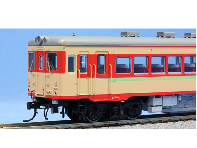 ◇実車 キハ55系は、国鉄最初の優等列車用気動車として、1956年(昭和31年)に初めて姿を現しました。当初は旧形式称号規程で、例えば3等車(現在の普通車)の形式はキハ44800形とされましたが、間もなく、現在も続く新規程による形式に改められました。仲間にはキハ26、キロ25、キロハ25、そして試作車キハ60とキロ60があります。開発のベースとなったのは1953年(昭和28年)から量産が始まったキハ17系(当初はキハ44000)です。優等列車に使うために車体断面を大きくし、出入台と客室との間に仕切り壁を設け、腰掛も長時間の乗車に耐えうるレベルにグレードアップされています。キハ17系との違いとして、キハ55では床下にエンジンを2基取り付けて性能向上をはかったことも挙げることができます。1957年(昭和32年)製のグループでは正面窓が大きくなっています。続いて同年の後半には、台車をキハ17系と同様のタイプから、軸バネをウイングバネとし、枕バネにも2連のコイルバネを採用して乗り心地の向上をはかったDT22/TR51に変更したグループが登場します。1958年(昭和33年)以降に製造されたグループでは車体のモデルチェンジが行われ、側窓がそれまでの上段固定下段上昇式のいわゆる”バス窓”から、大きな1段上昇式に改められました。エンジンも同じDMH17系ながら、出力をそれまでの160PSから180PSに向上させたDMH17Cが採用されました。今回の製品はこのグループをプロトタイプとしています。キハ26は、キハ55のエンジンを1基とした形式です。キロ25は、優等列車に欠かせない優等車として1959年(昭和34年)から登場した形式で、エンジンは1基です。座席一区分に対して側窓が一つという配置は、そのころの国鉄の優等車であるナロ10と同じです。 この形式はまた、国鉄気動車としては初めての全室2等車(現在のグリーン車)でもありました。キロハ25は、1輌全部を2等車とするほどでない列車のために開発された2・3等合造車です。1958年(昭和33年)に初登場です。最初の5輌は、3等がバス窓、2等が狭い幅の一段窓という組み合わせでした。そしてキハ60とキロ60は、400PSという大馬力エンジンDMF31HSA形を搭載した試作車です。キハ60は2輌、キロ60は1輌だけが1960年(昭和35年)に製造されました。車体は、側扉が外吊り式となっているのが特徴です。1961年(昭和36年)には、後継形式として、車体幅を拡げるなどの改良を施したキハ58系が登場し、徐々に第二線級に退くことになりますが、1987年(昭和62年)まで、一部は荷物車などに改造されながらも、全国の国鉄線上を走り続けました。 車体の塗装は、登場時には全体をクリーム色2号、雨樋と窓下に赤2号の帯(2等車は青1号)を入れていましたが、1959年(昭和34年)以降に製造されたグループは、後のキハ58系と同じクリーム色4号の車体に、窓廻りを赤11号とすることに変更されました。それまでの車輛も、後にこの色の組み合わせに変更されています。この塗装には、時代や地域により、細かい部分にバリエーションがあるようです。ほぼ同形の車輛として、南海電鉄の5501・5551形と、島原鉄道のキハ26・55形があります。どちらも、国鉄線への乗り入れ直通運転を目的として製造された車輛です。この系列については、鉄道ピクトリアル誌の1984年(昭和59年)3月号 ”キハ55系気動車”2003年(平成15年)3月号 ”キハ55系”レイル50号 ”なつかしの準急・急行形気動車”などに詳しい解説や多くの写真が掲載されています。 ◇形式と塗装 キロ25・・実車は回転クロスシートを装備した1等車(←旧2等車)で、エンジンは1基です。すべて1959年(昭和34年)以降に製造されたので仕様はキハ55・26の101〜と同等ですが、番代区分はされずに1〜61となっています。 ◇スペック ・省電力片軸モーターによる1台車駆動。 ・曲線最小通過半径550mm ・前照灯・尾灯・室内灯はLEDにより点灯。前照灯・尾灯のON/OFFスイッチ装備(スイッチは床下、動力台車脇にあります) ・DCC(デジタルコマンドコントロール)デコーダー用8Pジャックを車内の基盤に装備。