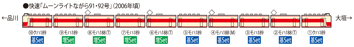 10両編成に組成された編成は、集約臨時列車や夜行快速 「ムーンライトながら91・92号」を中心に使用されました。