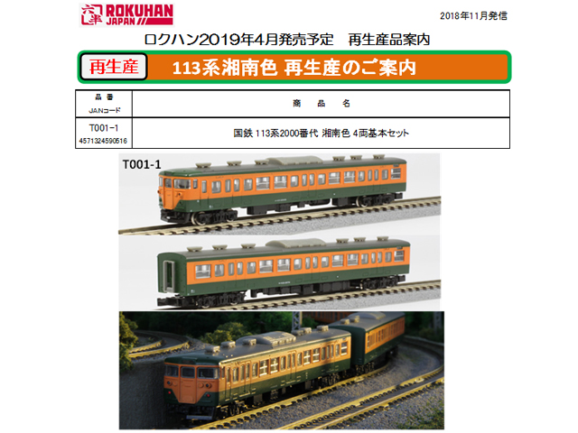 ●2011年10月、ロクハンZゲージの記念すべき第1号製品として発売、長らく品薄となっていた113系湘南色が、待望の再生産!