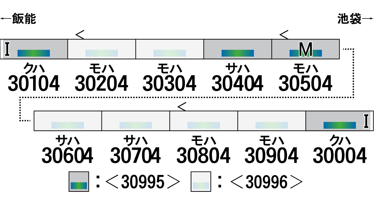 30000系は2008年4月に登場した新しい西武鉄道を象徴する通勤型車両で、「SmileTrain〜人にやさしく、みんなの笑顔をつくりだす車両〜」をコンセプトに開発されました。西武鉄道の通勤車としては初の広幅断面形状のアルミダブルスキン車体を採用し、車内案内装置にも15インチ液晶ディスプレイ(LCD)を搭載するなど快適性を高めています。内外装のデザインは「卵」をモチーフとし、外観は柔らかなふくらみと内装は温かみのある優しい空間をイメージしています。基本となる8両編成に増結用の2両編成、及び貫通10両編成があります。