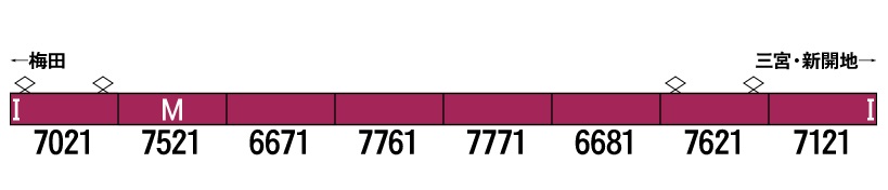 7000系は、6000系をベースに1980年から1988年まで210両製造された阪急におい