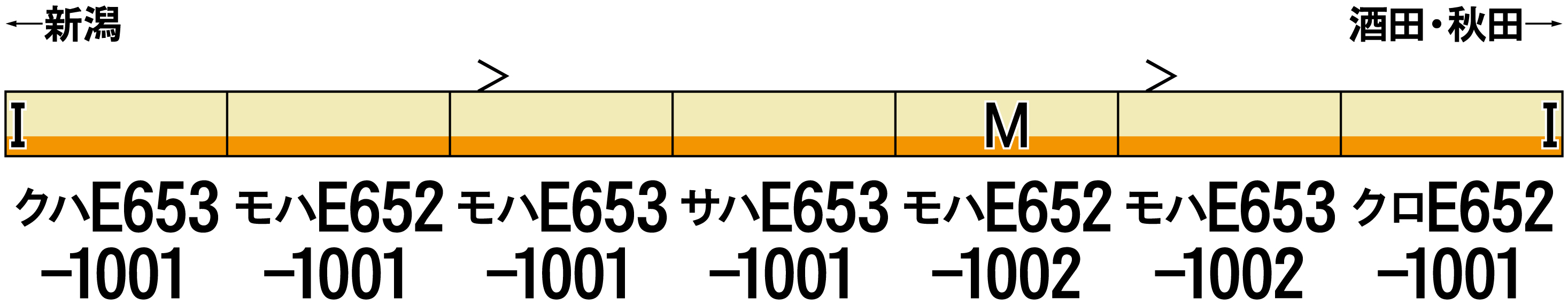 E653系1000番代は、常磐線で「フレッシュひたち」として活躍していたE653系を羽越本線の特急「いなほ」用として、降雪地区を運行するために必要な装備にリニューアルし、先頭車1両をグリーン車にグレードアップさせて誕生した車両です。