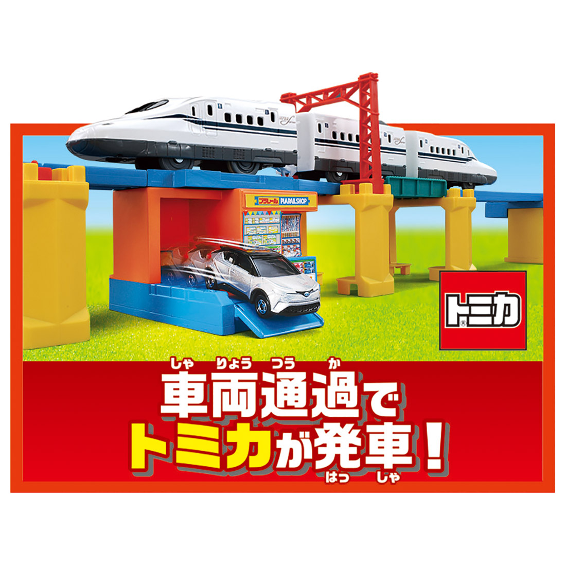 ■レイアウトに応じて建物の上部や背面を車両が通過すると予めセットしていたトミカが自動的に発車する新情景も入っています。