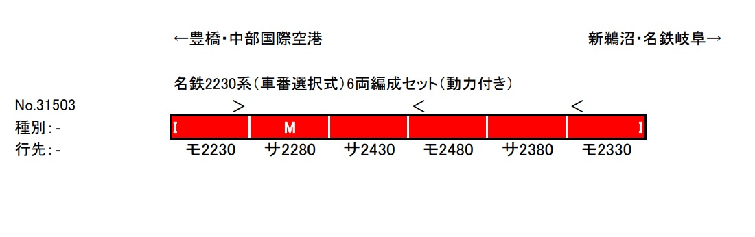 これまで1700系特別車2両が連結されていた車両を、2230系特別車2両で差し替えるかたちで6両編成が組まれました。