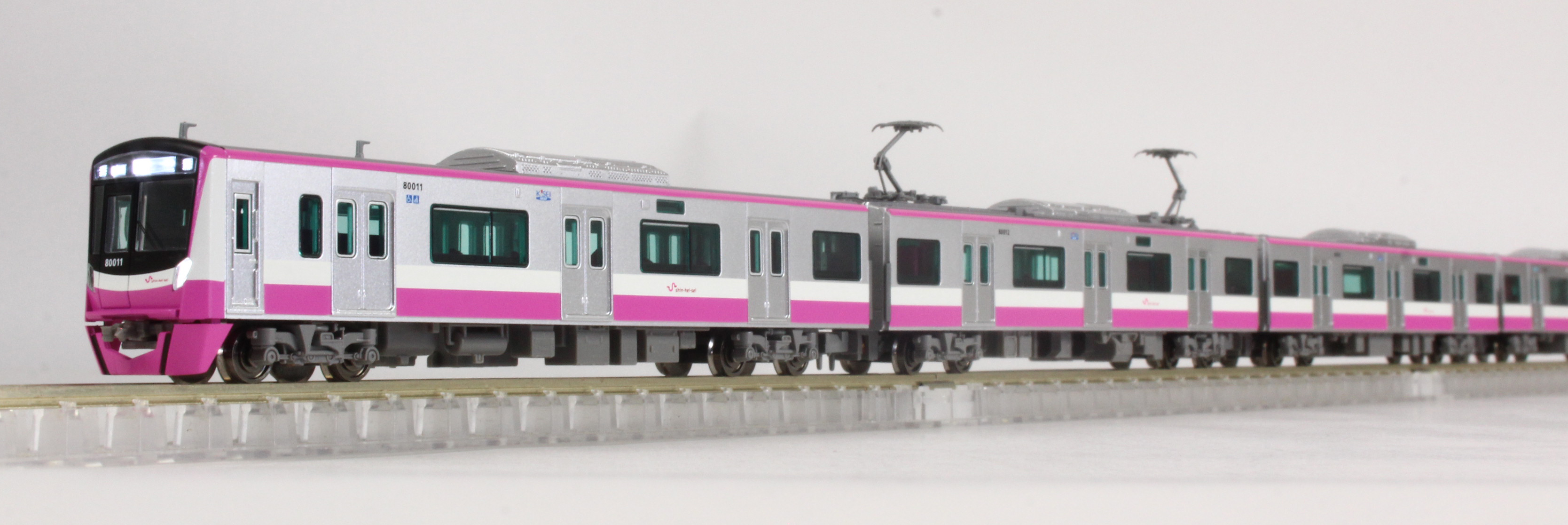 新京成80000形は2019年12月にデビューしました。京成電鉄3100形と共同で開発されました。カラーリングは新たに上部にジェントルピンクのラインを配色し、高架区間走行時も新京成のコーポレートカラーが周囲