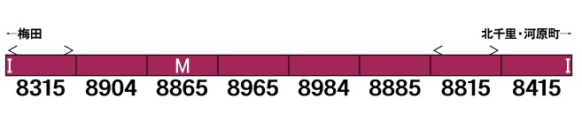 からは前面窓の拡大、車両番号の位置変更などの差異がみられます。主に8両編