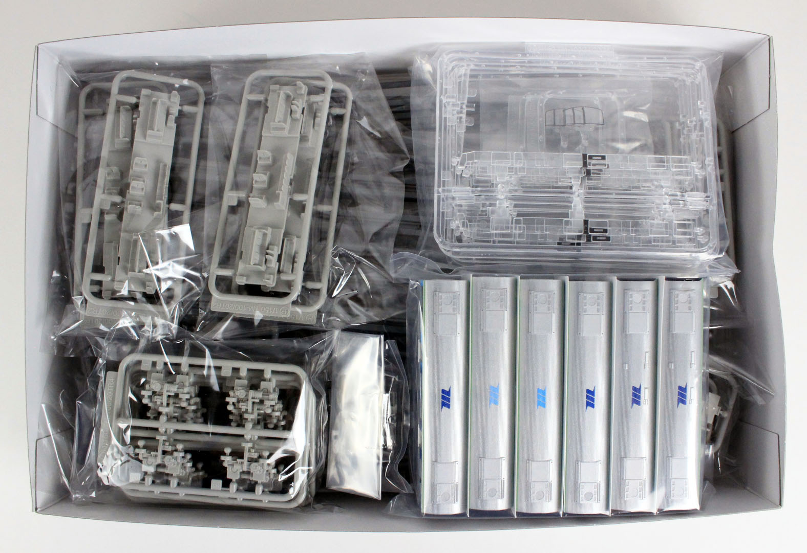 ・塗装・印刷による彩色が予め施され、組み立てるだけで手軽に6両フル編成が再現できる仕様。