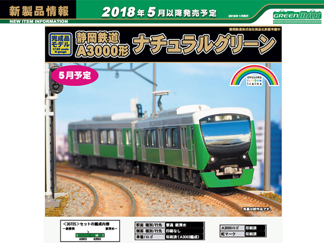 静岡鉄道の創立100周年をむかえる2019年度までに静岡市にちなんだ7色(パッションレッド・プリティピンク・ブリリアントオレンジイエロー・フレッシュグリーン・ナチュラルグリーン・クリアブルー・エレガントブルー)が、「shizuoka rainbow train」として登場します。既にクリアブルーとパッションレッドの2編成が活躍しており、2018年にはナチュラルグリーンの第3編成とブリリアントオレンジイエローの第4編成が登場します。