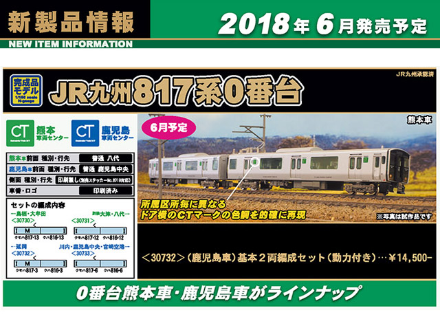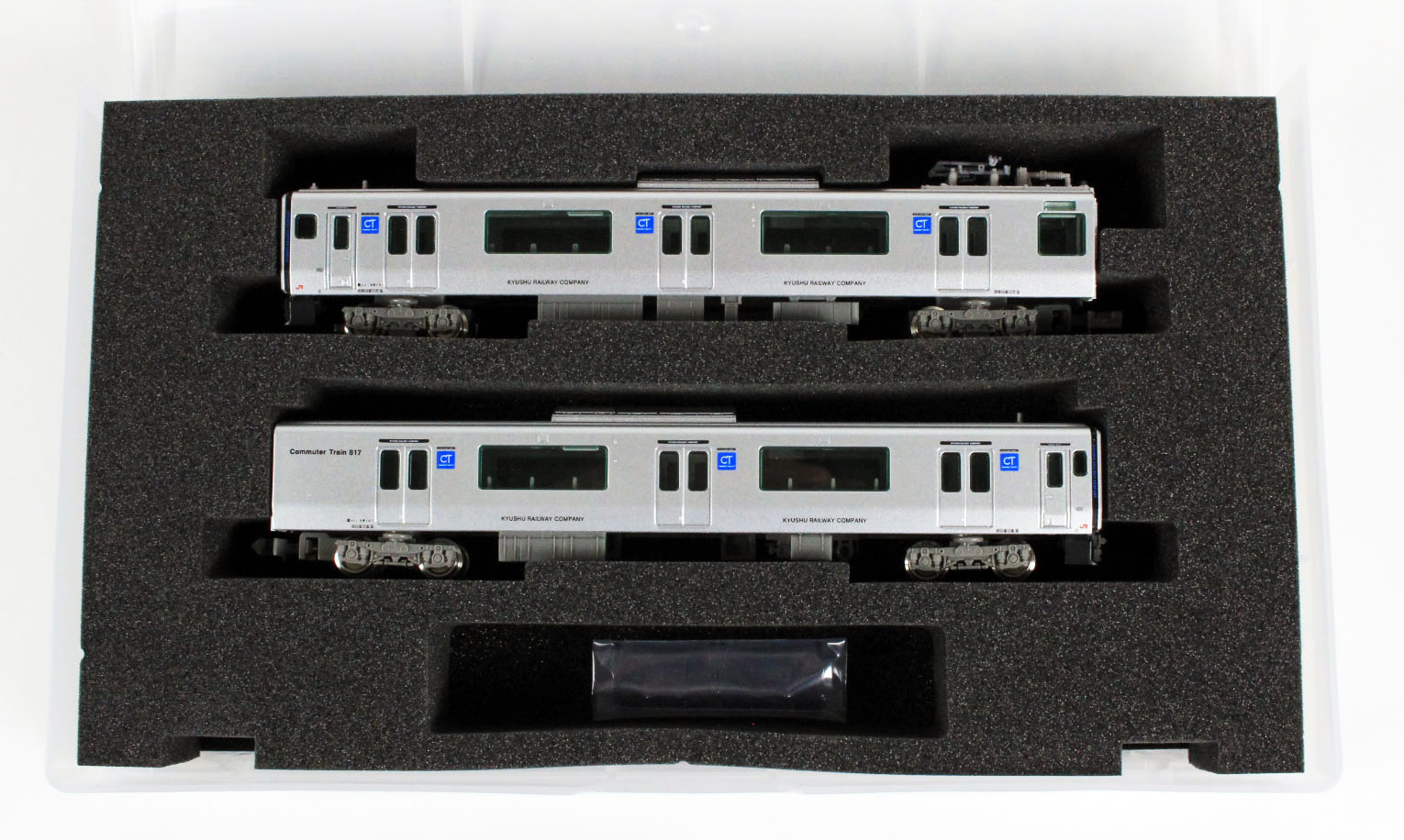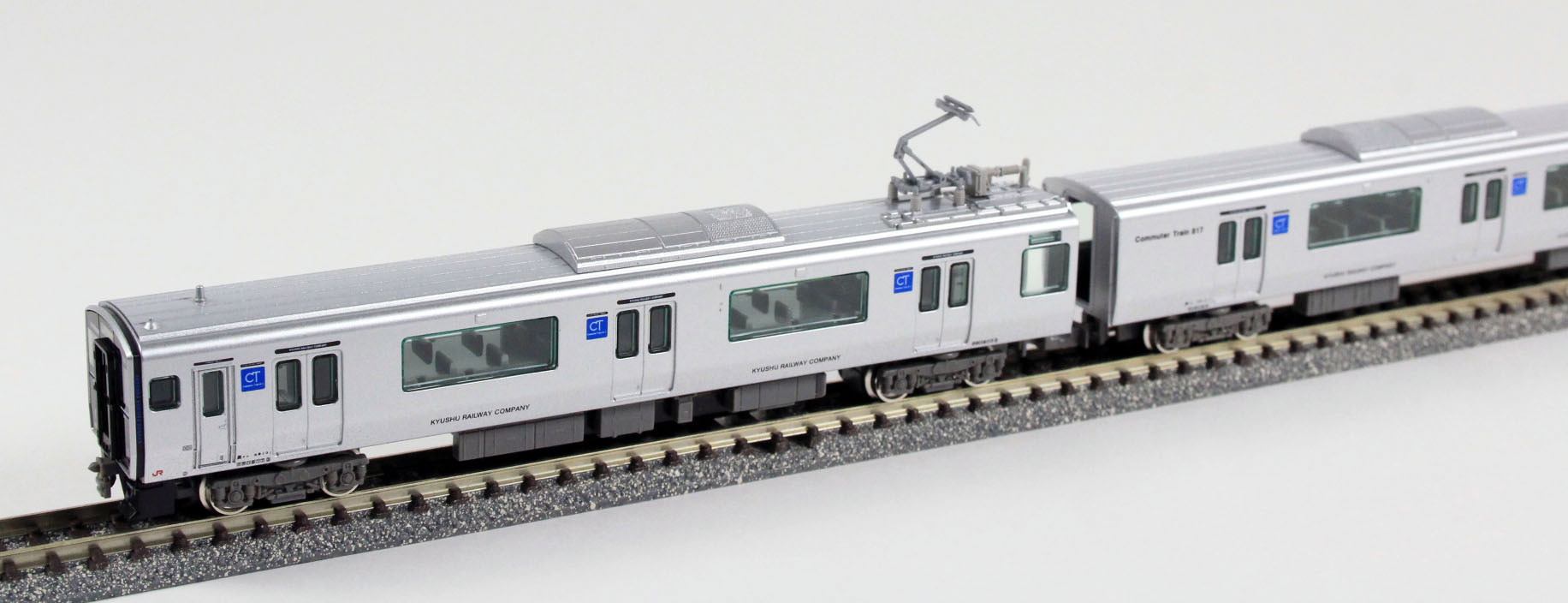 JR九州817系は、2001年に北九州地区に投入された20m3扉の近郊型車両で、その後の使用線区にあわせたバリエーション展開により九州全域で活躍しています。0番台は、登場時アルミヘアライン仕上げ無塗装車体(現在は銀色に塗装されています)に転換クロスシートを備えた2両編成として登場し、福北ゆたか線(篠栗線・筑豊本線)、長崎本線、佐世保線で活躍を開始しました。その後一部編成は鹿児島本線、日豊本線への転属を経て運用範囲が拡大し、九州全域で活躍しています。
