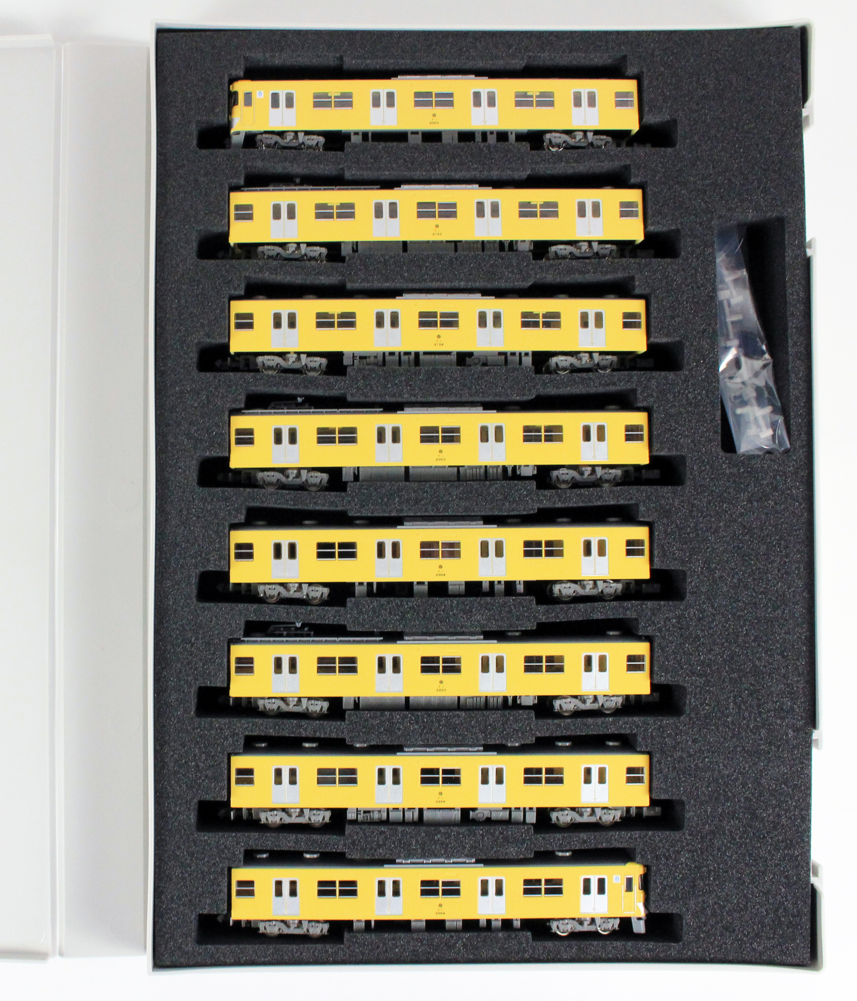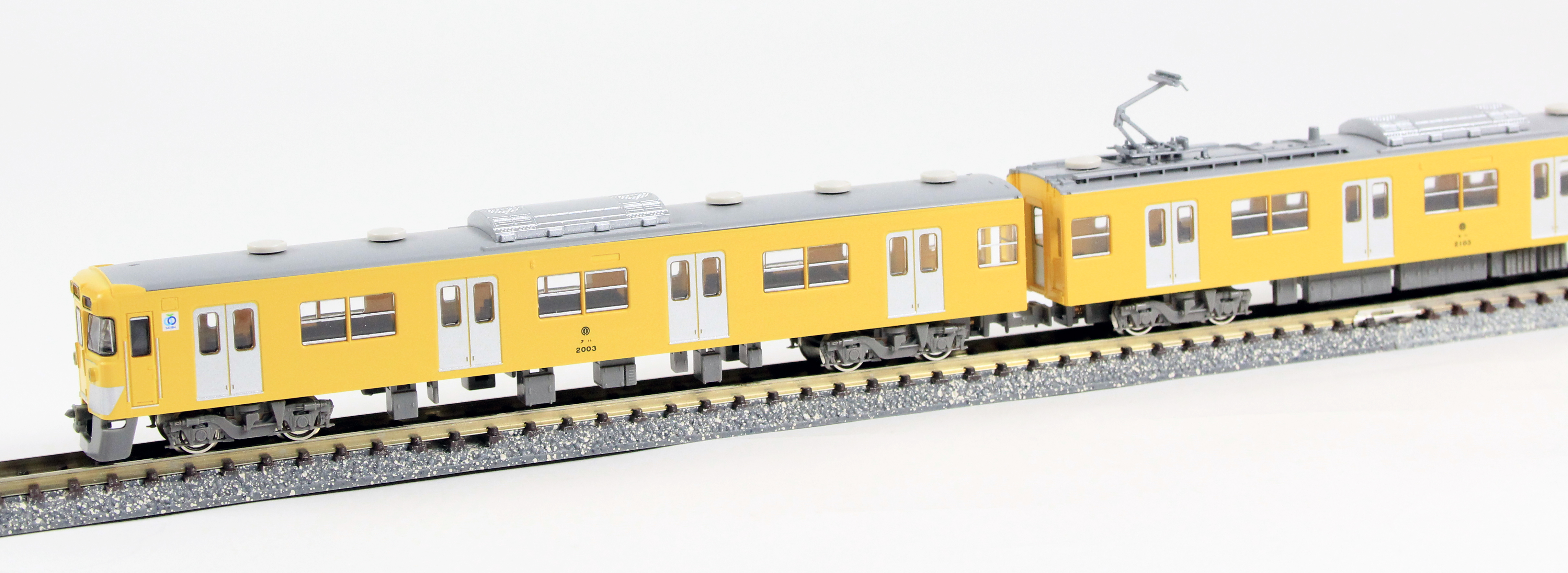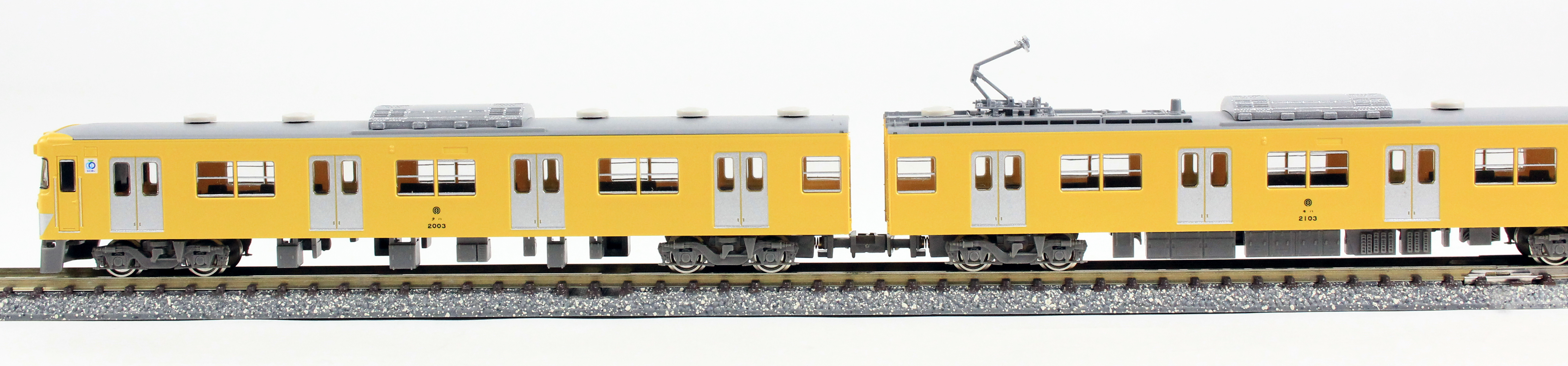 西武2000系は1977年に登場した20m4扉車で、前面は貫通型となり傾斜のあるパノラミックウィンドウ、レモンイエロー一色塗装など、当時の西武車両にはない新しいデザインを採用した車両です。その後側面方向幕やスカートの取付け、さらにはシングルアームパンタグラフへの交換、方向幕のLED化等更新工事が行われ、現在でも西武新宿線の主力車両として活躍中です。
