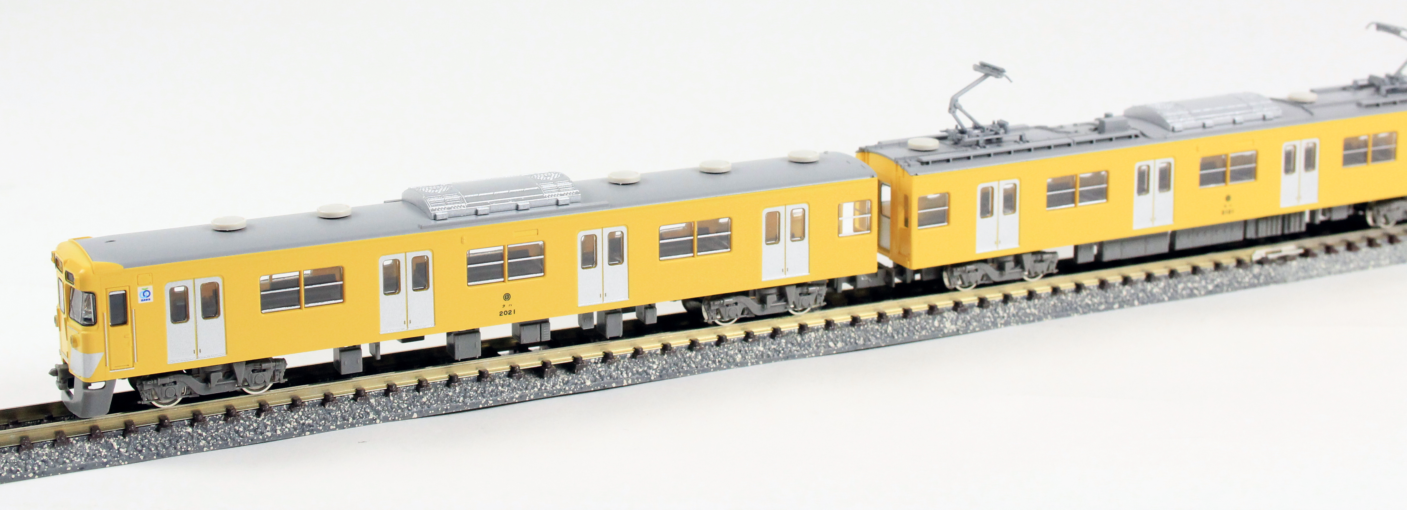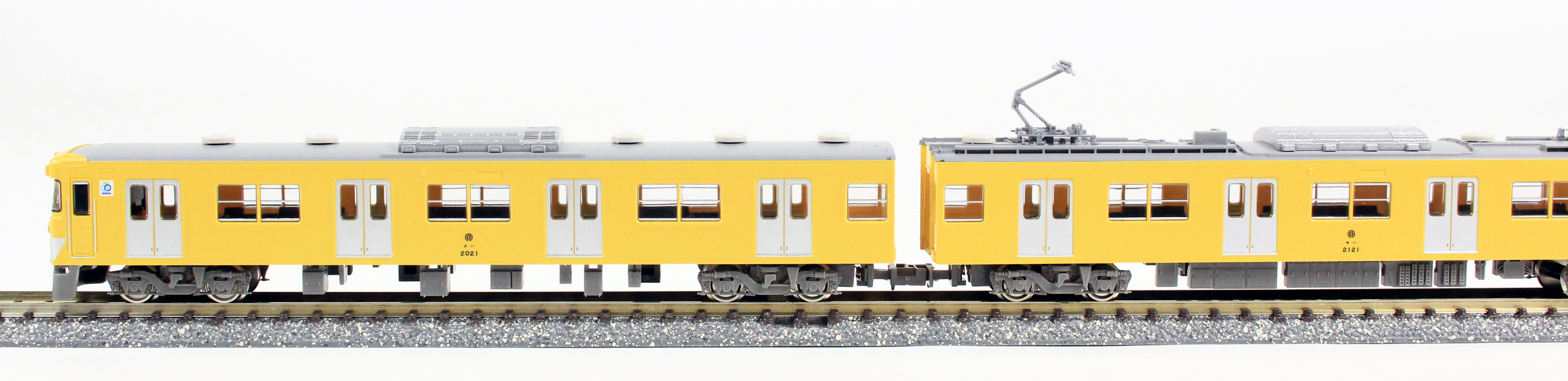 西武2000系は1977年に登場した20m4扉車で、前面は貫通型となり傾斜のあるパノラミックウィンドウ、レモンイエロー一色塗装など、当時の西武車両にはない新しいデザインを採用した車両です。その後側面方向幕やスカートの取付け、さらにはシングルアームパンタグラフへの交換、方向幕のLED化等更新工事が行われ、現在でも西武新宿線の主力車両として活躍中です。