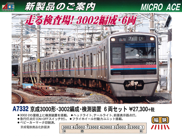 ています。3002編成の3002-2には屋根上に架線検測装置が搭載されています。