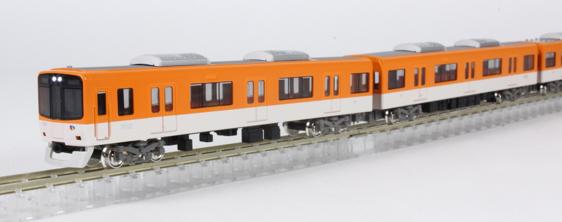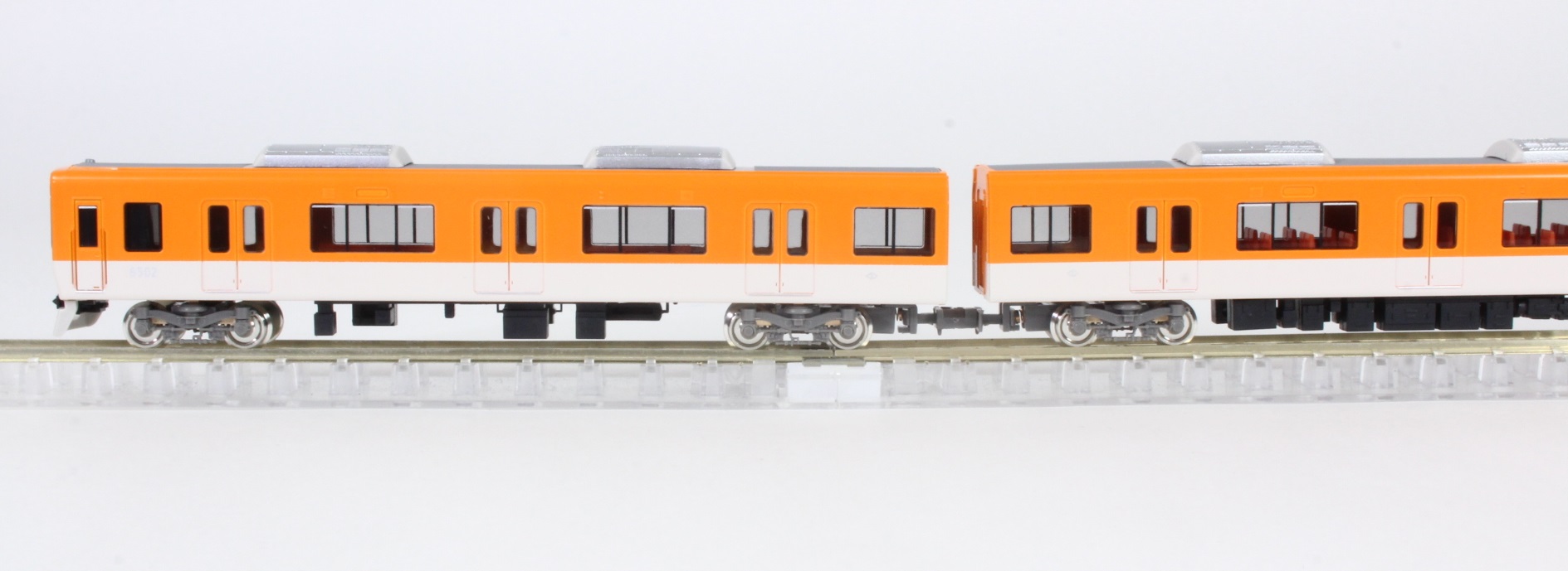 ■先頭車にはロングシート(オレンジ色)を、中間車にはクロスシート(オレンジ色)を実車に沿って装着