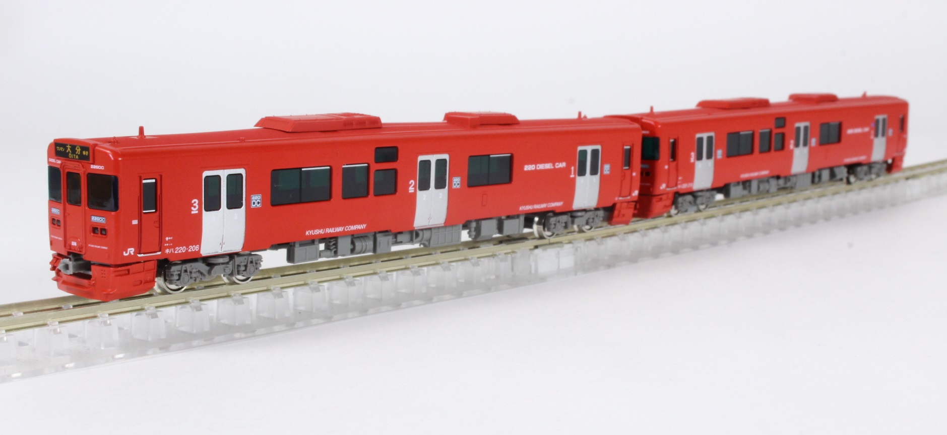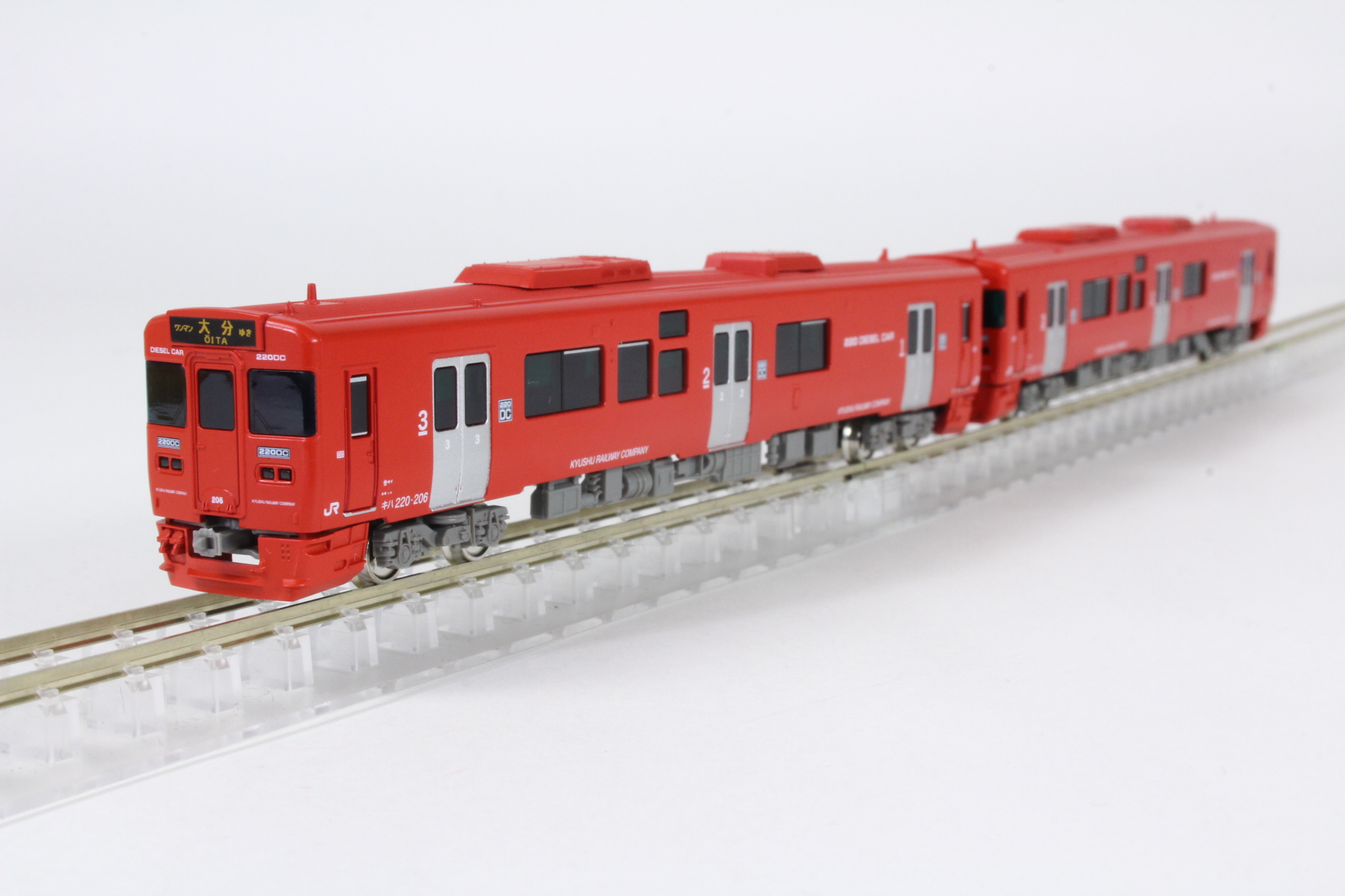 キハ220形200番台は、キハ200形を両運転台仕様として1997年に登場したキハ220形を2006年にワンマン対応などマイナーチェンジして登場した車両で、大分地区での運用に備えて増備されたものです。車内は、クロスシートとロングシートの折衷型となり、バリアフリー対応トイレと車椅子スペースが設けられました。外観では、前面及び側面の行先方向幕がバス用のLED式表示器を流用し大型化されているのが特徴です。