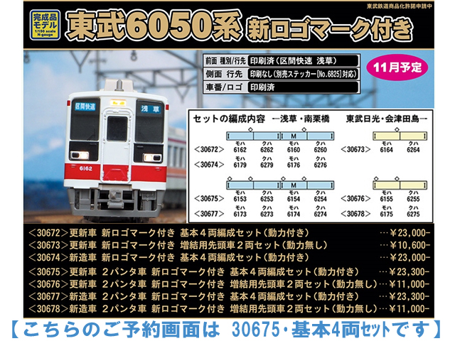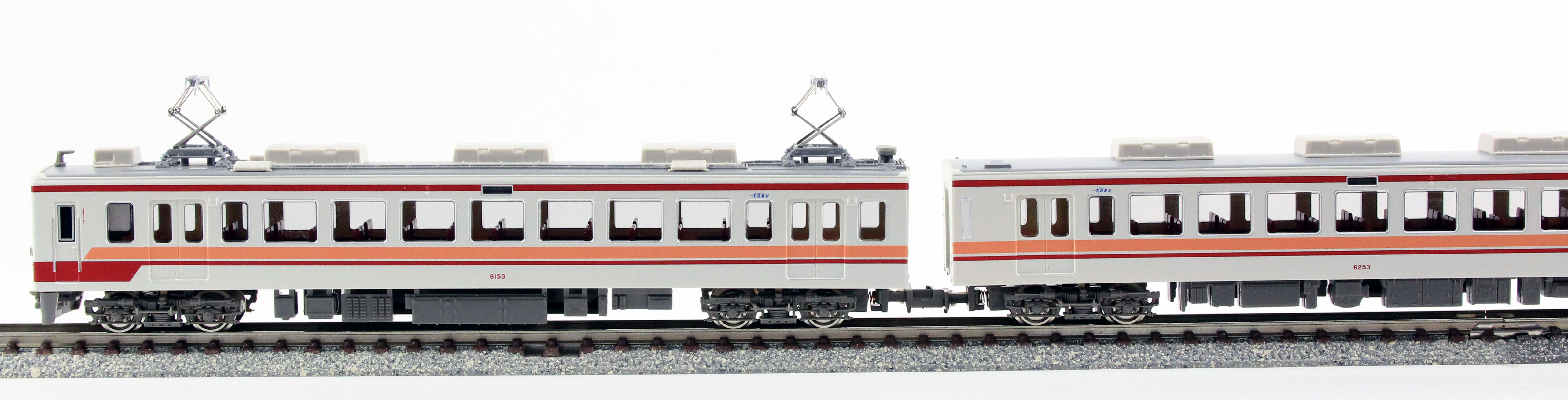 東武6050系は6000系の車体更新によって登場した2扉セミクロスシート車両で、1985年から1986年にかけて2両編成22本が更新により登場しました。更新途中に車両が不足することから完全新造編成が1985年に1編成、1986年に1編成、1988年に増備(これらの2編成は野岩鉄道へ譲渡)され、その後は7編成および野岩鉄道向けの1編成が増備、1990年には会津鉄道向けに1編成が製造されています。完全新造編成は台車がSUミンデン型台車になっている点が特徴です。1996年には増解結の効率化を図るため、先頭部の連結器が、自動連結器から電気連結器付き密着連結器へ交換され、前面向かって左側に取り付けられていたジャンパ栓受けが撤去されています。2001年3月のダイヤ改正から日光線の普通列車で運用される事となり、5編成に霜取り用パンタグラフが増設されました。また、2006年の区間快速の登場に合わせて完全新造車2編成に追加で霜取りパンタグラフが増設されています。