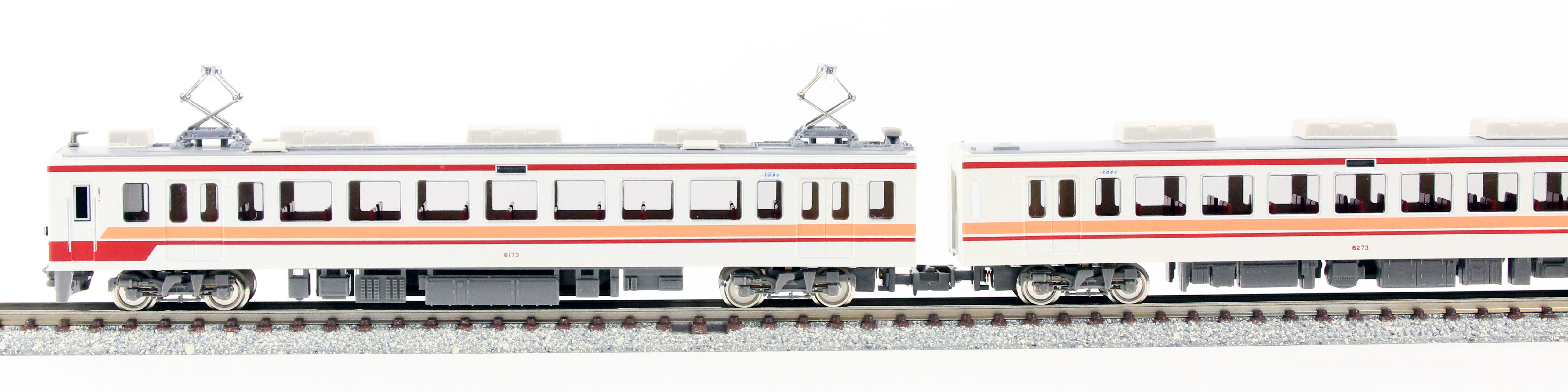 東武6050系は6000系の車体更新によって登場した2扉セミクロスシート車両で、1985年から1986年にかけて2両編成22本が更新により登場しました。更新途中に車両が不足することから完全新造編成が1985年に1編成、1986年に1編成、1988年に増備(これらの2編成は野岩鉄道へ譲渡)され、その後は7編成および野岩鉄道向けの1編成が増備、1990年には会津鉄道向けに1編成が製造されています。完全新造編成は台車がSUミンデン型台車になっている点が特徴です。1996年には増解結の効率化を図るため、先頭部の連結器が、自動連結器から電気連結器付き密着連結器へ交換され、前面向かって左側に取り付けられていたジャンパ栓受けが撤去されています。2001年3月のダイヤ改正から日光線の普通列車で運用される事となり、5編成に霜取り用パンタグラフが増設されました。また、2006年の区間快速の登場に合わせて完全新造車2編成に追加で霜取りパンタグラフが増設されています。