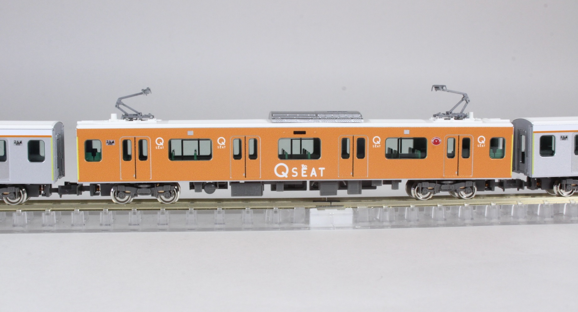 ■車内のクロスシートと車端部のヘッドレスト付きロングシートを再現した「Q SEAT」車を組み込んだ編成を製品化!