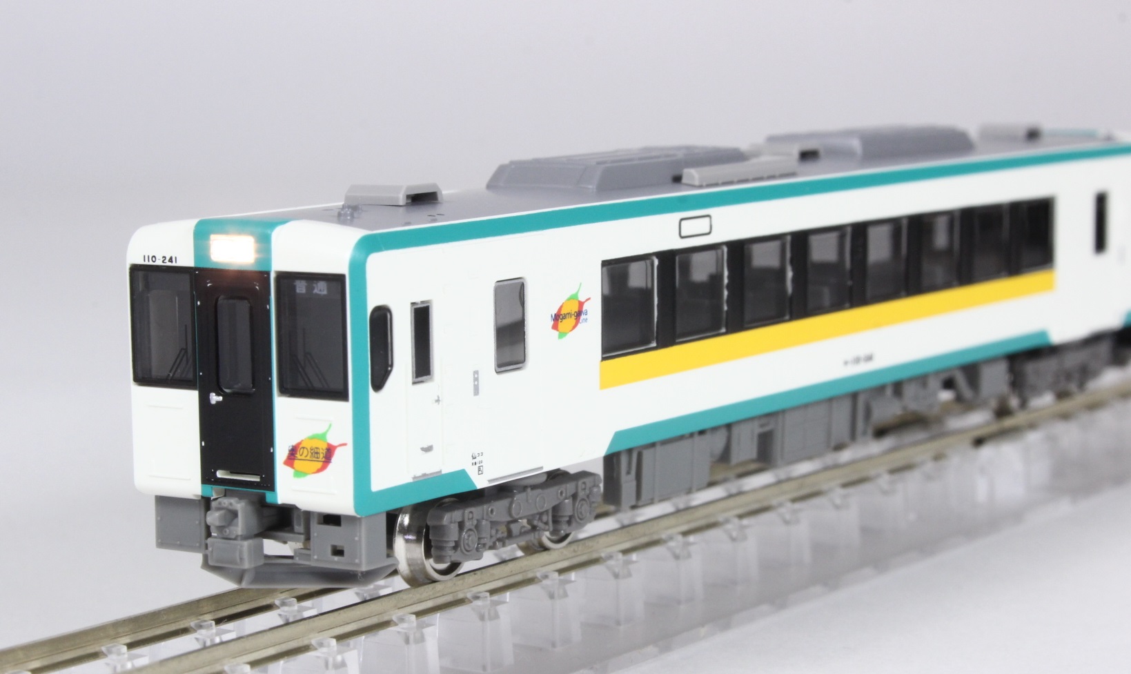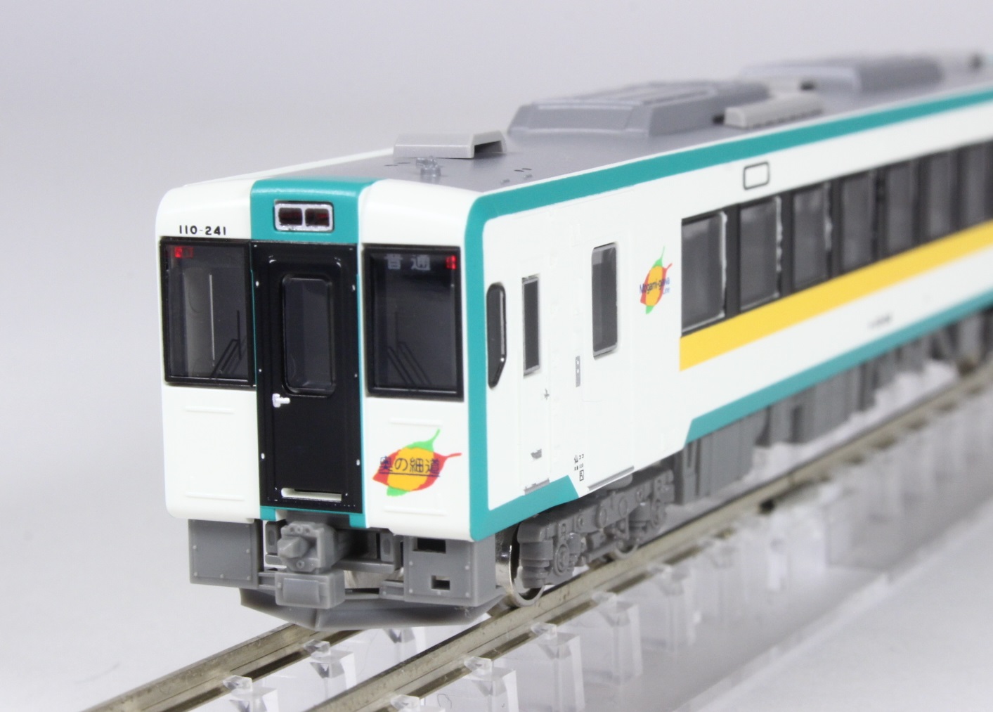 ■陸羽西線で活躍する両運転台車キハ110形2両編成を2016年頃の姿で再現しています。