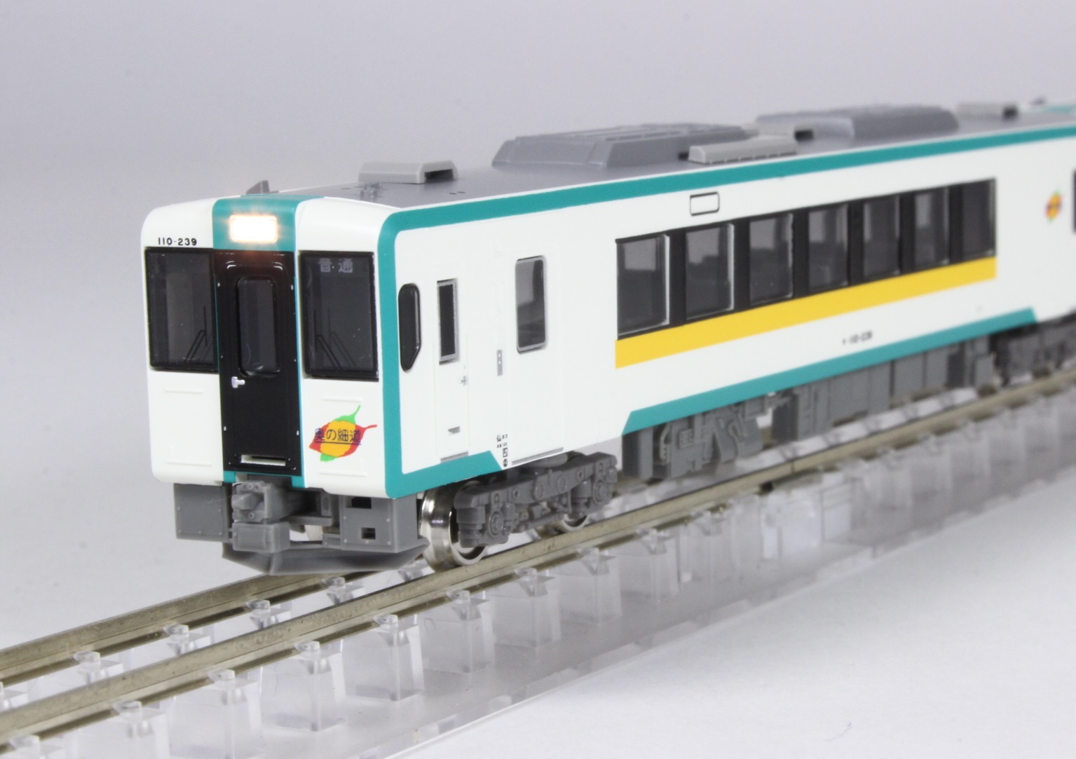 ■陸羽西線で活躍する両運転台車キハ110形2両編成を2016年頃の姿で再現しています。