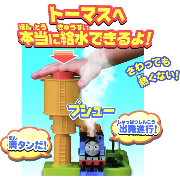 みずがなくなったとき「のどがかわいた!」「ぼくにお水をいれてよ!」「みーず!みーず!」給水したとき「満タンだ!」「出発進行!」