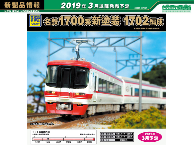 ■新塗装化された1700系の1702編成を、前面ライトカバー縁のカラーデザイン(車体同色)を再現して製品化します。