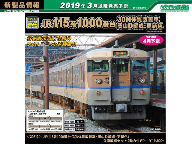 ■115系1000番台の、岡山地区で活躍する「30N体質改善車」をプロトタイプに、実車の特徴を忠実に再現します。