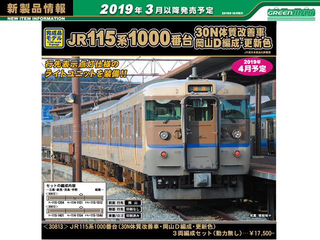 ■115系1000番台の、岡山地区で活躍する「30N体質改善車」をプロトタイプに、実車の特徴を忠実に再現します。