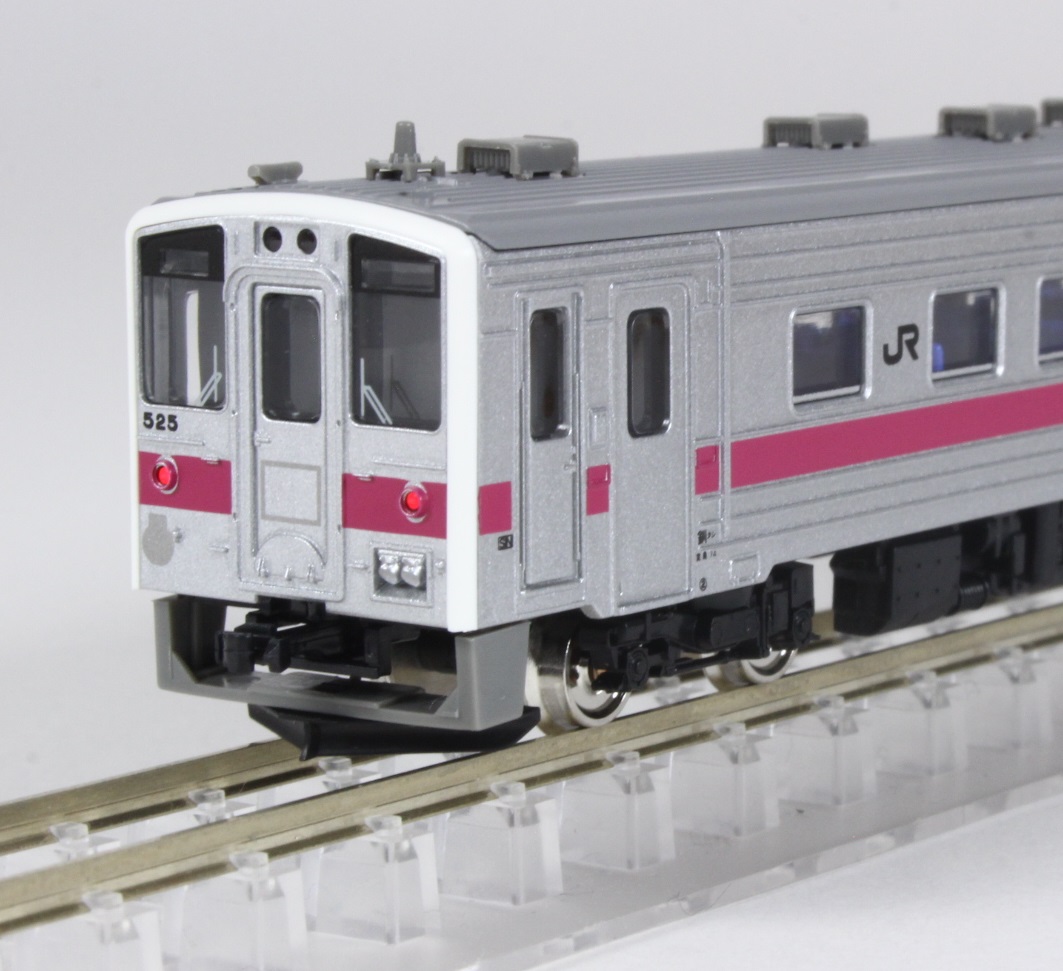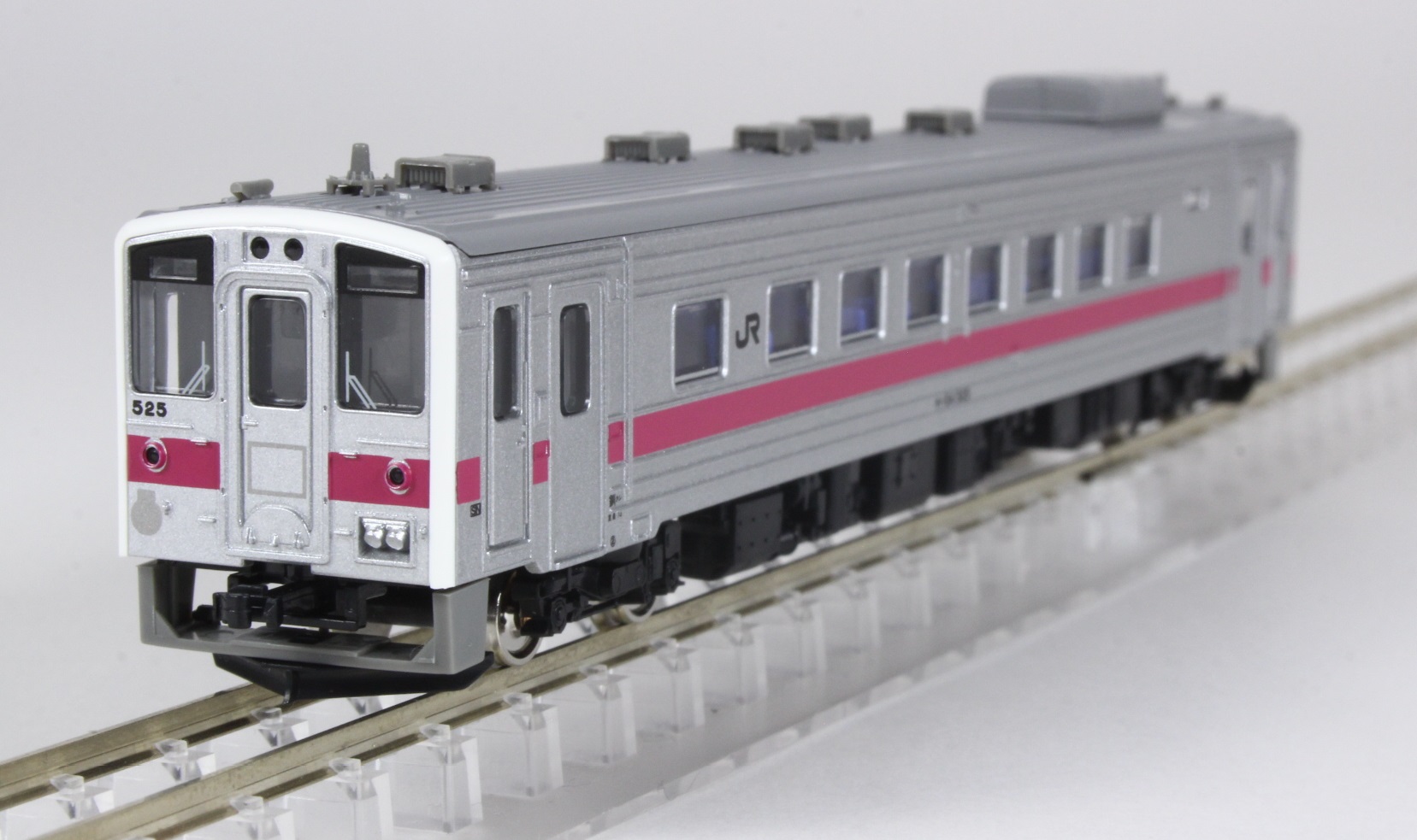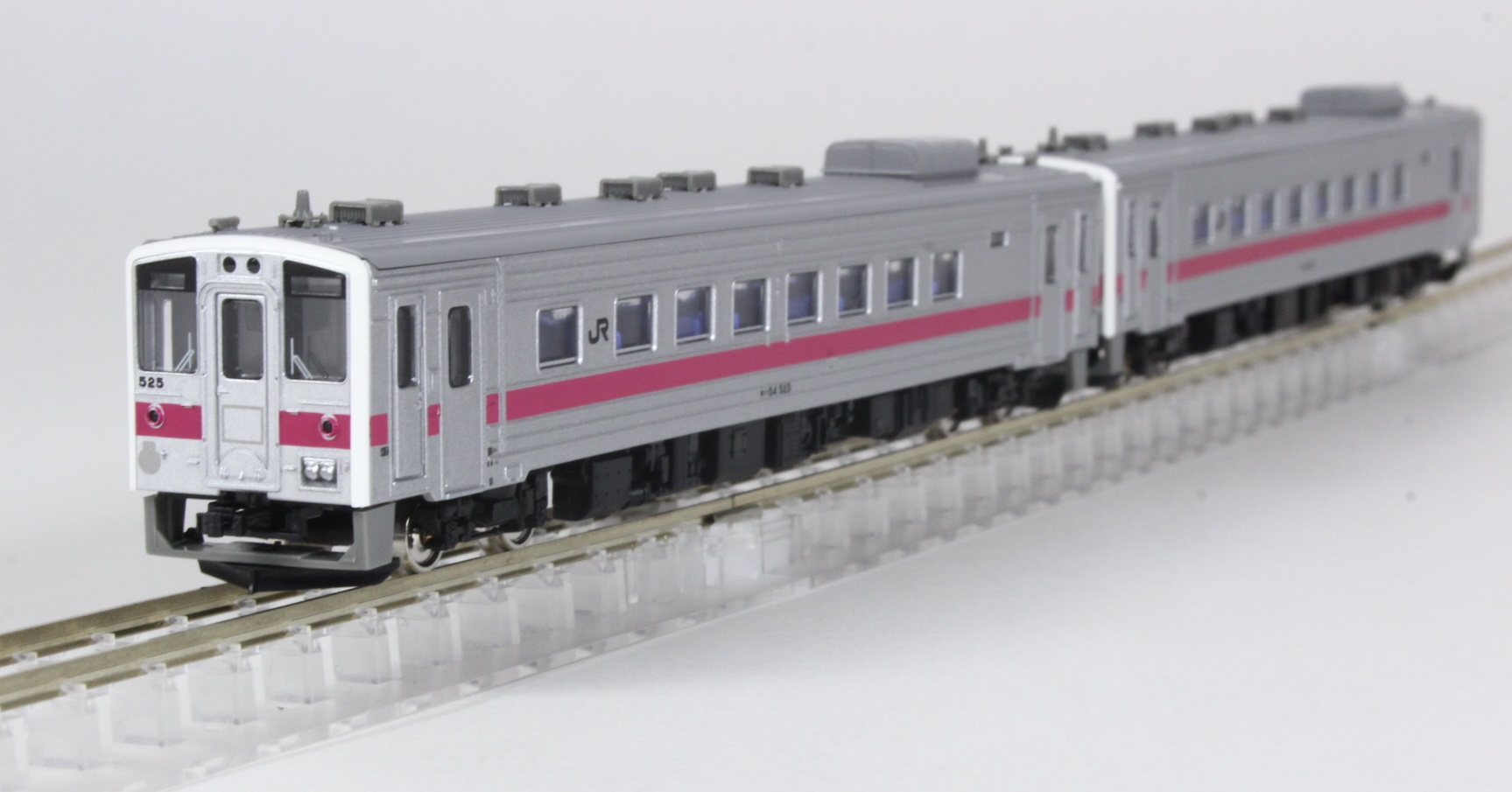 JR北海道で活躍するキハ54形は、酷寒地向けとして登場した21m級の両運転台式一般形気動車です。2003年から2005年にかけて機器の更新工事が施工され、外観上では、台車が従来のDT22からボルスタレス台車N-DT54に交換されているのが大きな特徴です。機器更新工事の他に、鹿笛の設置で前面のタイフォンが撤去されています。「花咲線」用の車両については、側面の帯を“ハマナスの花”をイメージしたピンク系の色に変更されています。