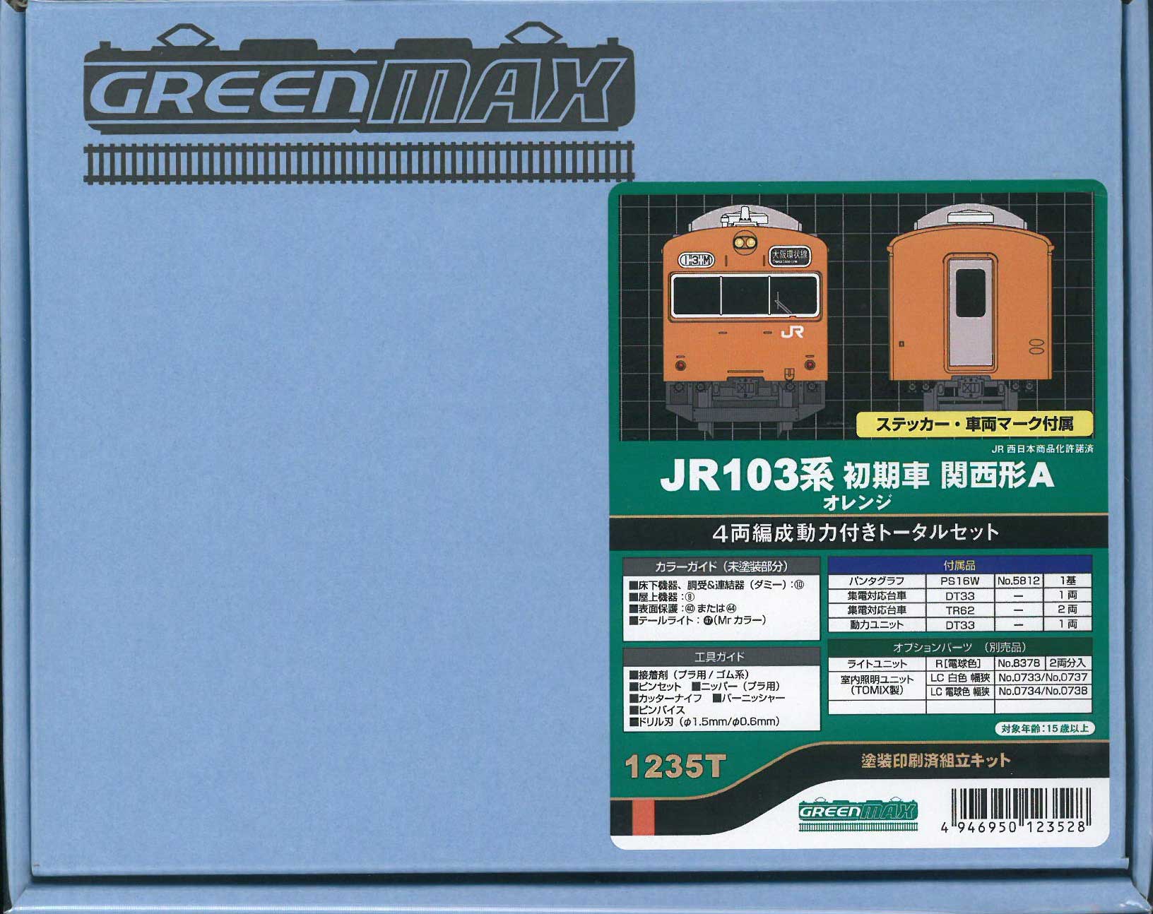 ・先頭部のJRマークは印刷済み、前面・側面方向幕は付属ステッカー選択式、車両番号は付属インレタ選択式です。