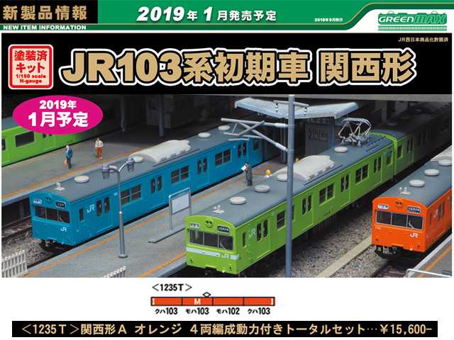 ・中間車4両セットには、サハ103が2両、モハ102・103各1両の4両分の車体部品と床下機器、台車、パンタグラフが含まれます。※動力は含まれません。