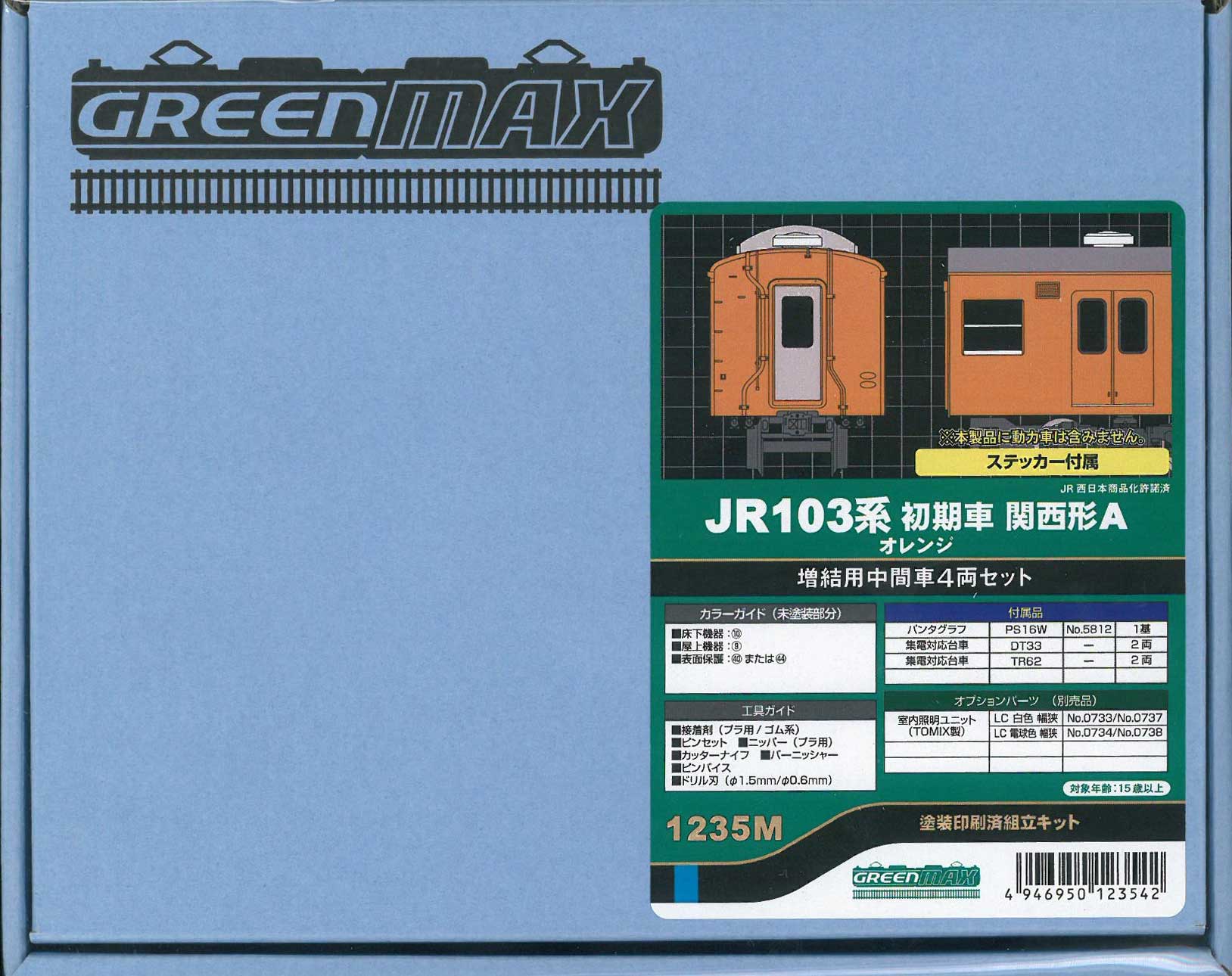 ・先頭部のJRマークは印刷済み、前面・側面方向幕は付属ステッカー選択式、車両番号は付属インレタ選択式です。