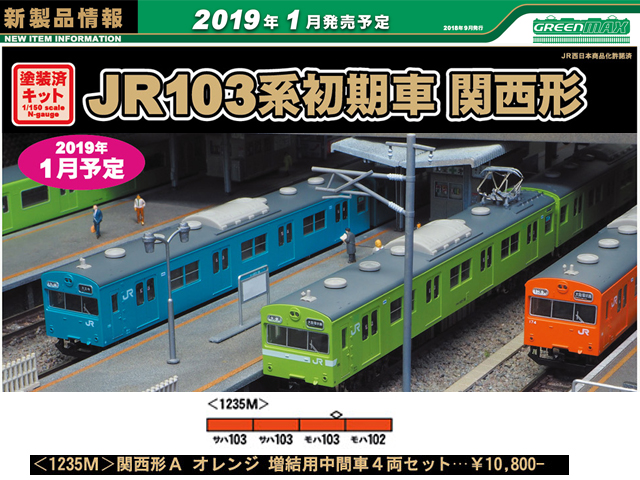 ・中間車4両セットには、サハ103が2両、モハ102・103各1両の4両分の車体部品と床下機器、台車、パンタグラフが含まれます。※動力は含まれません。