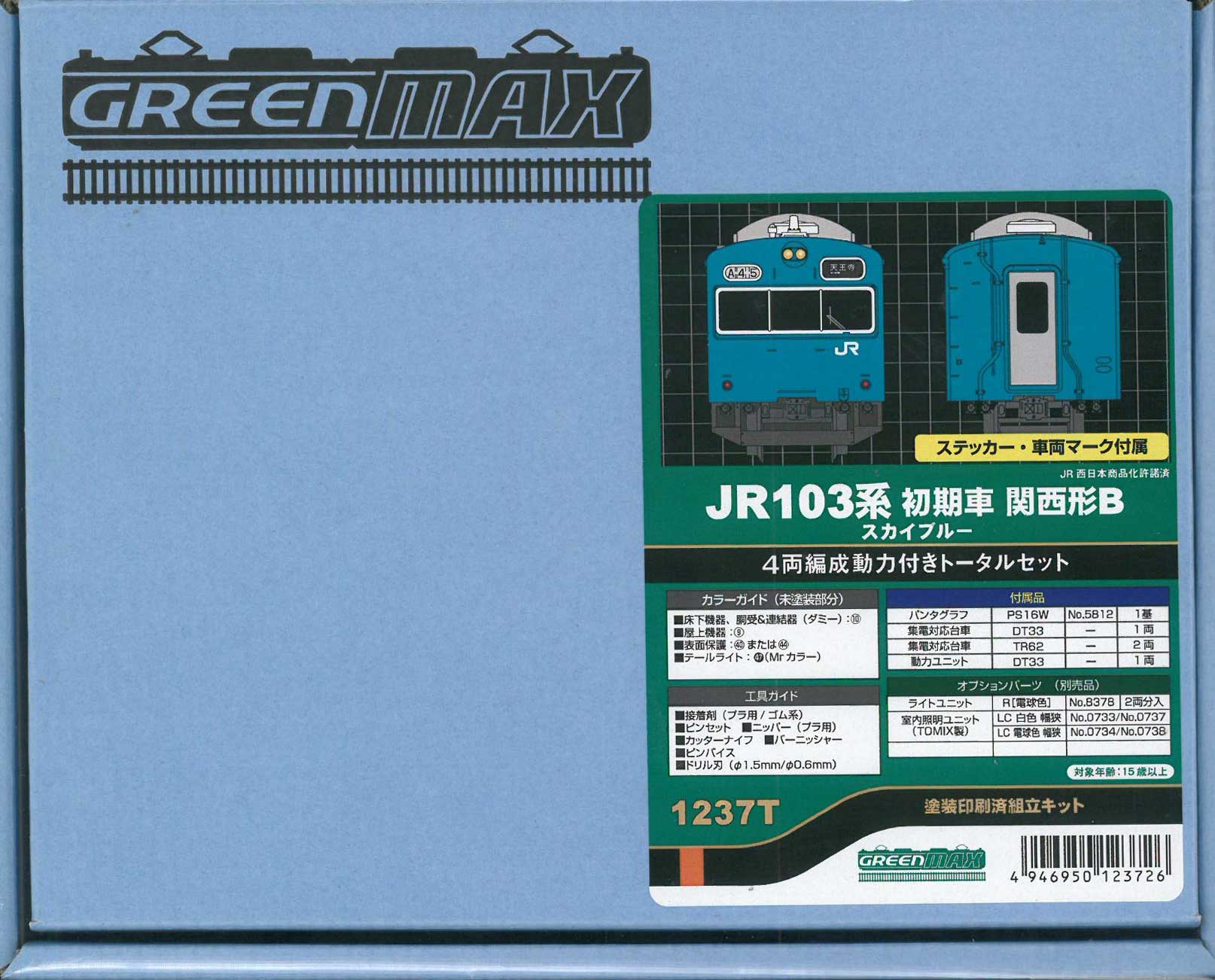 ・Bセットの4両編成セットにはクハ103、クモハ103、モハ102、サハ103が各1両の車体部品と動力ユニット(No.1237T)、床下機器