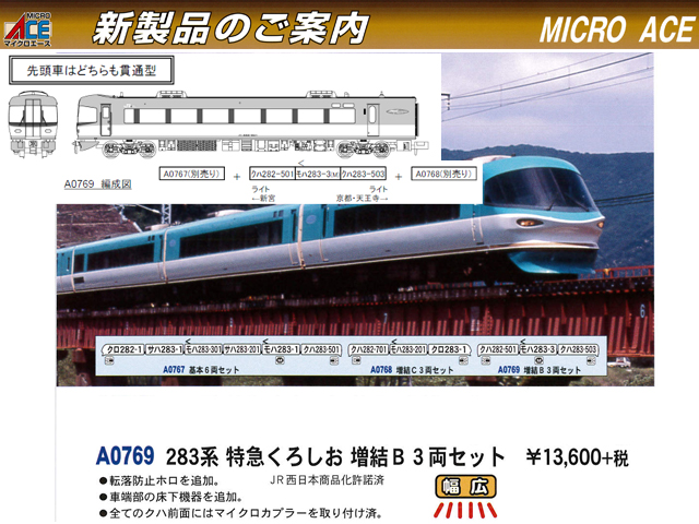 ・A0769⇒先頭車はどちらも貫通型クハ282・クハ283 M付き