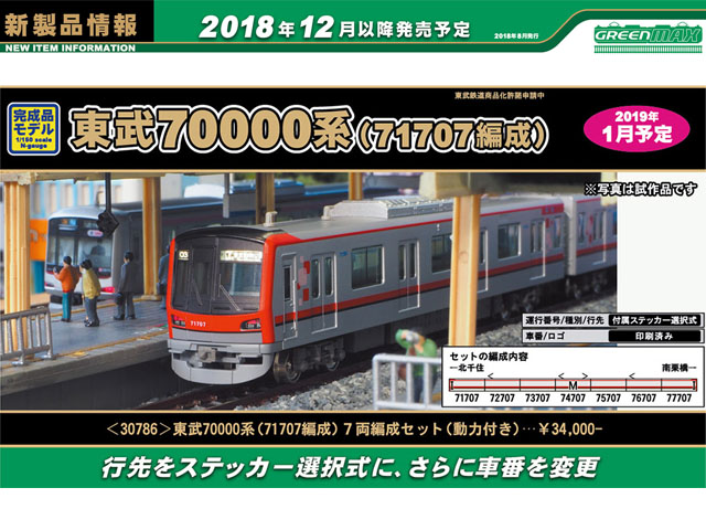 ■東武鉄道の新型車両70000系を、編成番号を変えて製品化します。