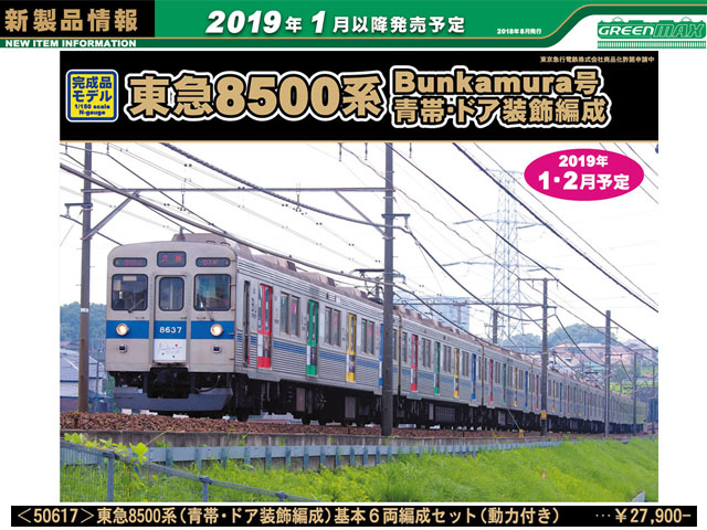 ■8500系8637編成のカラフルなドア装飾と、さらに「Bunkamura号」としてラッピングされた姿を製品化します。