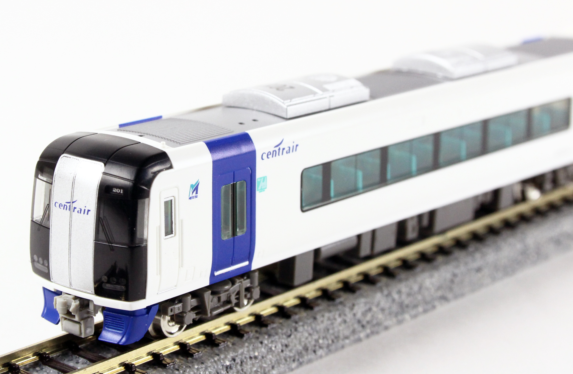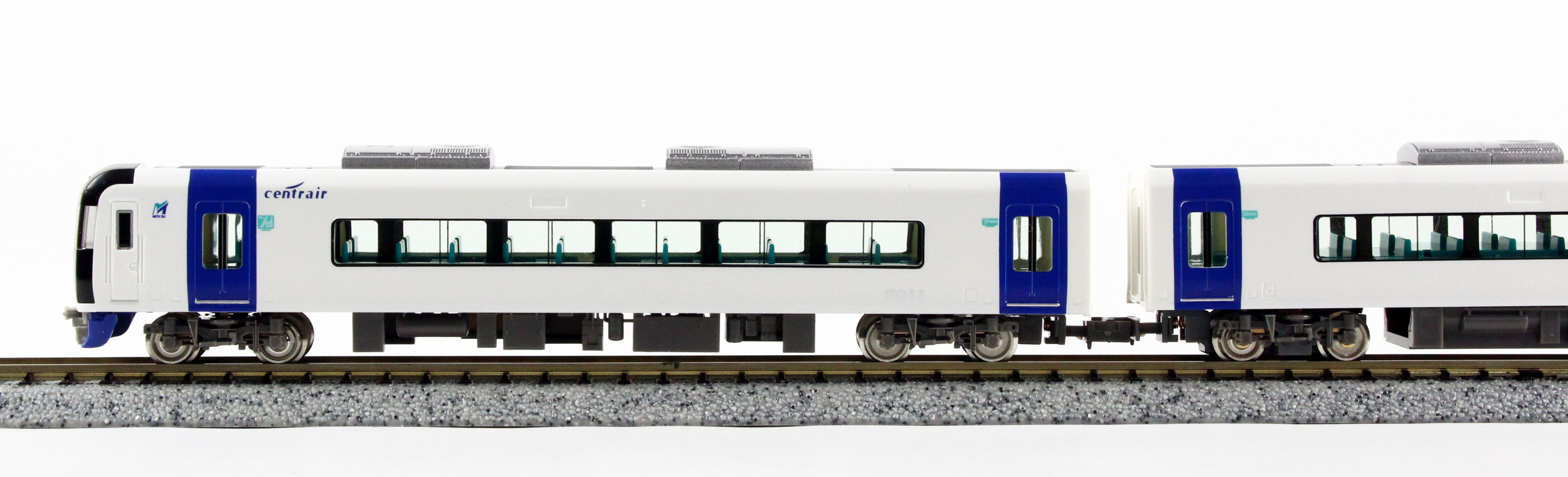 名鉄2000系は、2005年に開港した中部国際空港へのアクセス特急「ミュースカイ」用の車両で、複雑な3次曲面を持った前面や青と白の斬新なカラーデザインとともに名鉄電車の従来のイメージを一新するスタイルが特徴です。登場時は3両編成で運用されていましたが、利用者急増による混雑緩和のため、2006年に全編成の4両編成化のための中間車と、3次車となる4両編成2本の増備が行なわれました。3次車では新たに荷物置き場が設置されその部分の窓配置が従来車と異なります。後に従来車も荷物置き場が設置され、その部分の窓はカーテンが常時下ろされた状態になっています。