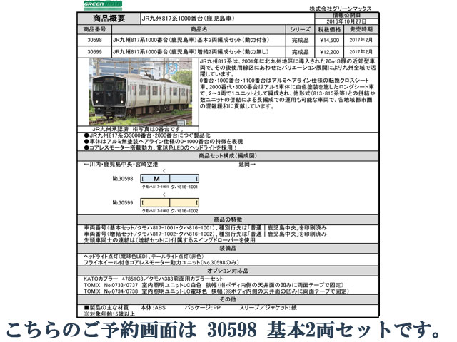 ●JR九州817系の3000番台・2000番台につぐ製品化