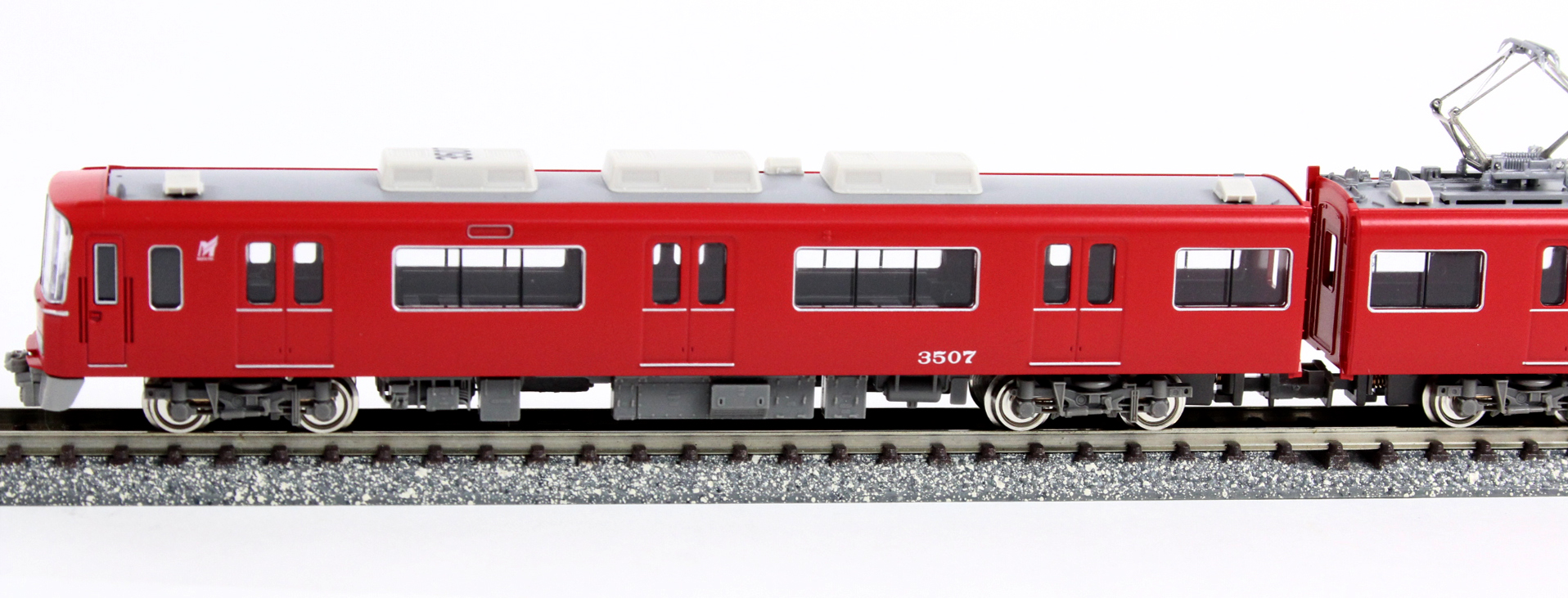 3500系は、それまでの通勤形車両6000系列(6000・6500・6800系)の後継車両として1993年に登場した車両で、VVVFインバータ制御、電気指令式ブレーキ、ワンハンドルマスコンの初採用、高速性能の向上による120km/h走行の実現など新機軸が盛り込まれた高性能通勤車として活躍している名鉄の主力車両です。車体は6500系に準じた普通鋼製の3扉ロングシートで、前面にはスカートが取り付けられています。また、電気指令式ブレーキ装備車であることを示す「ECB」ロゴが前面に貼付されています。2017年から本格的な更新工事が実施され、制御機器の更新の他行先表示器のフルカラーLED化、ドアチャイムの設置、車内案内表示器の更新などが行なわれています。