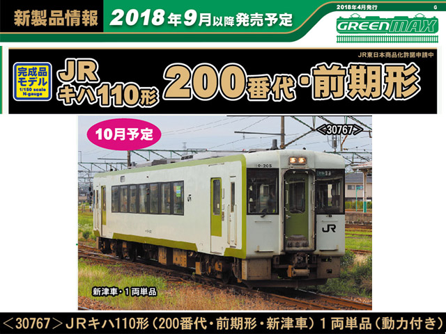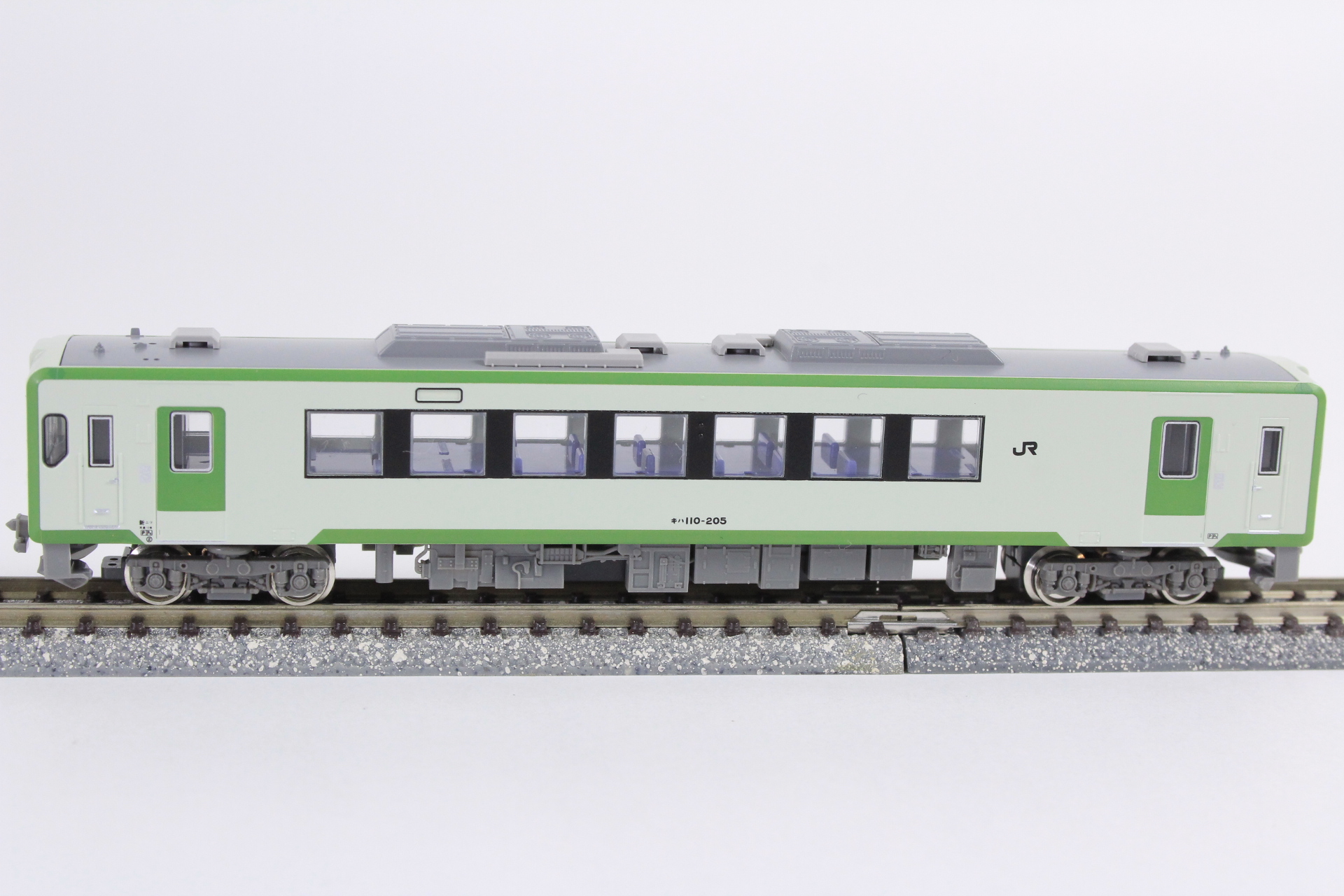キハ100系列は、ローカル線のサービス改善を図るためJR東日本が開発した気動車で、車体の長さ、両運転台・片運転台など多彩な車両があり、路線条件に応じて各地で活躍範囲を広げています。電車並みの加速性能も持っており、ローカル線のスピードアップに大きく寄与しています。キハ110形100番代以降のグループは、普通列車用に開発されたグループで、車体長が20mになり、200番代は客扉が引戸式に変更されています。200番代の後期形は安全対策のため運転台が250?延長されています。