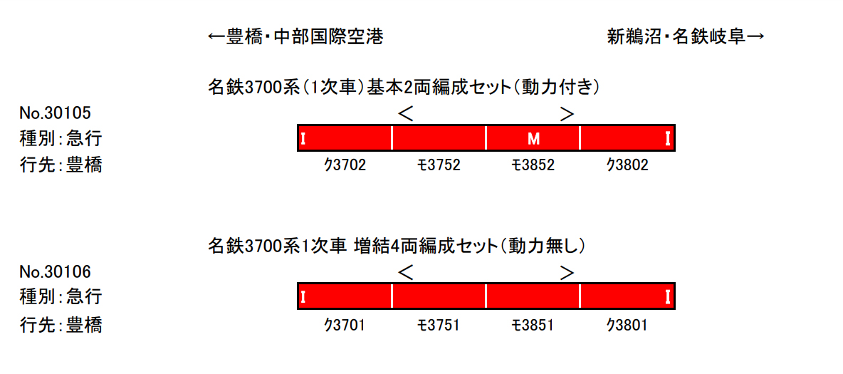 ■種別・行先表示(急行・豊橋)、車両番号、Mマークロゴは印刷済み
