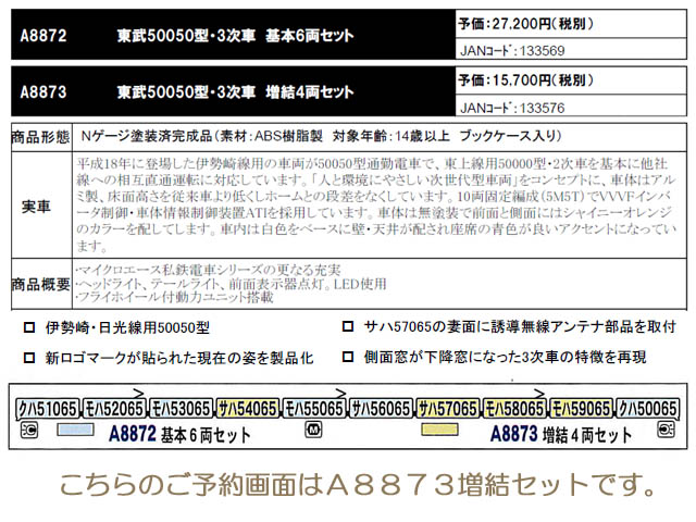 平成18年に登場した伊勢崎線用の車両が50050型通勤電車で、東上線用50000型・2次車を基本に他社